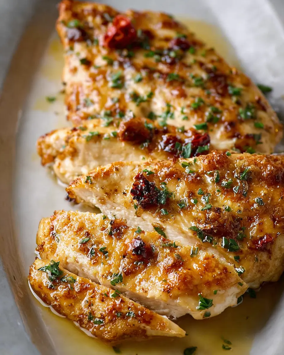 Once done, your 4-ingredient melt-in-your-mouth chicken will be ready to serve. Consider garnishing with fresh parsley for a pop of color and freshness. Pair this dish with a simple side salad or roasted vegetables for a complete meal that’s sure to impress! Enjoy cooking!
