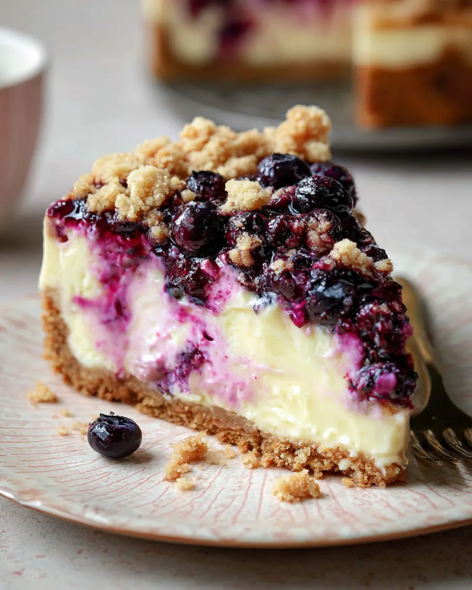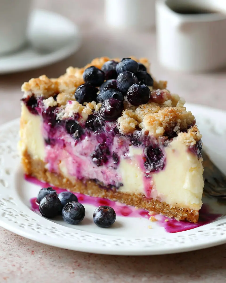 By following these steps, you’ll create a stunning dessert that’s both delicious and visually appealing. Enjoy your baking experience, and get ready to impress your friends and family with this delightful Blueberry Crumble Cheesecake!