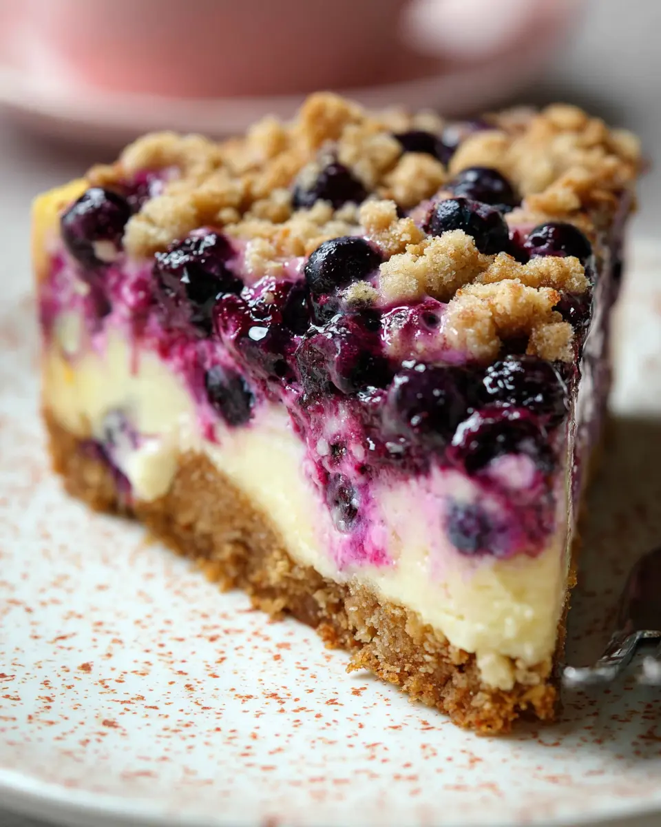 In summary, this delightful blueberry crumble cheesecake combines rich creaminess with the tangy burst of blueberries, all topped with a crisp crumble. It’s a stunning dessert perfect for any occasion! Treat yourself and loved ones to a slice, and watch it become a favorite around your table. Enjoy!