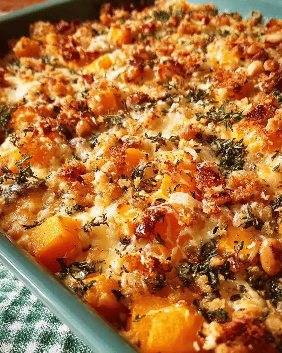 In summary, this butternut squash casserole is a delightful blend of flavors and textures. With the warmth of sage, the crunch of almonds, and the creamy cheese topping, it’s a dish that’s perfect for gatherings or simply comforting nights at home. Give it a try, and enjoy the cozy goodness!