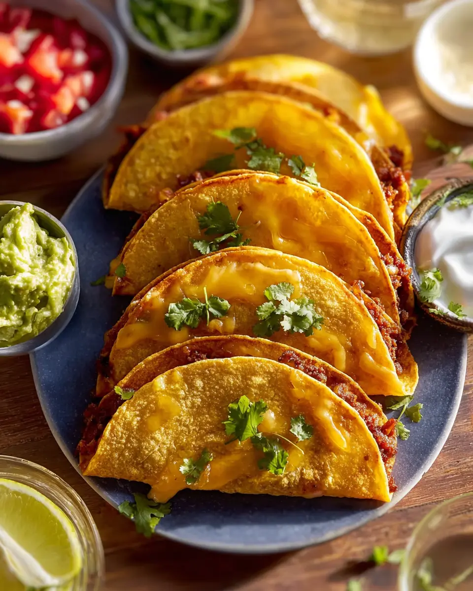 After a few minutes of cooling, your cheesy baked tacos are ready to serve. Pair them with salsa, sour cream, or guacamole for dipping. They’re best enjoyed fresh out of the oven for that melty cheese goodness, but if there are any leftovers—you can always reheat them in a 350°F oven or even in an air fryer for a quick fix.