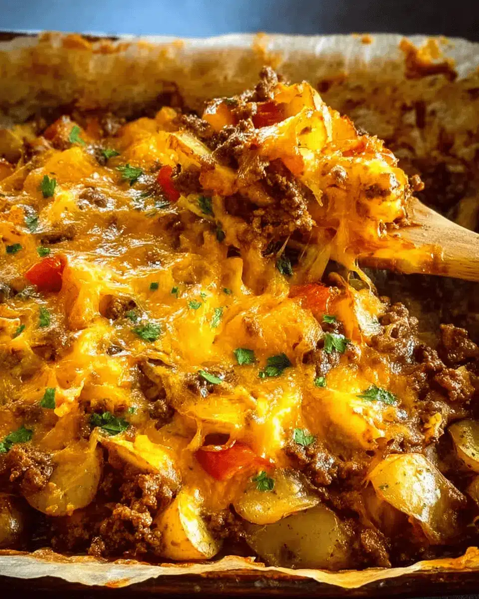 Storing leftovers is easy. Put any uneaten cheesy ground beef and potatoes in an airtight container and refrigerate for up to 3 days. To reheat, simply pop it in the oven at 350°F (175°C) until warmed through, or microwave individual portions for a quick meal. Just be sure to cover it to retain moisture!