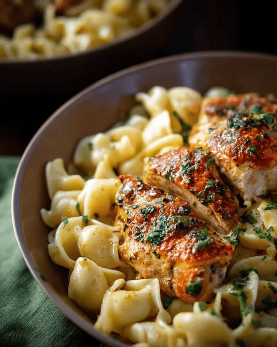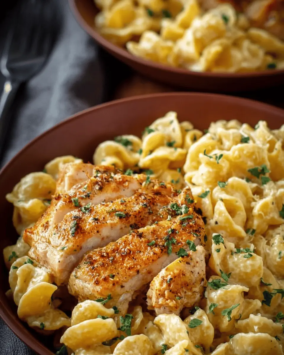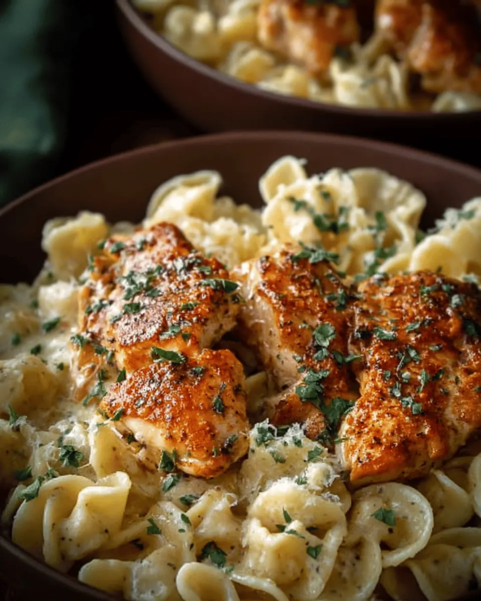 Finally, it’s time to plate your masterpiece. Start by serving a generous spoonful of those buttery noodles onto your plates, topping them with your perfectly cooked chicken. If you like, sprinkle some additional parmesan and a dash of chopped fresh parsley for that vibrant pop of color and flavor.