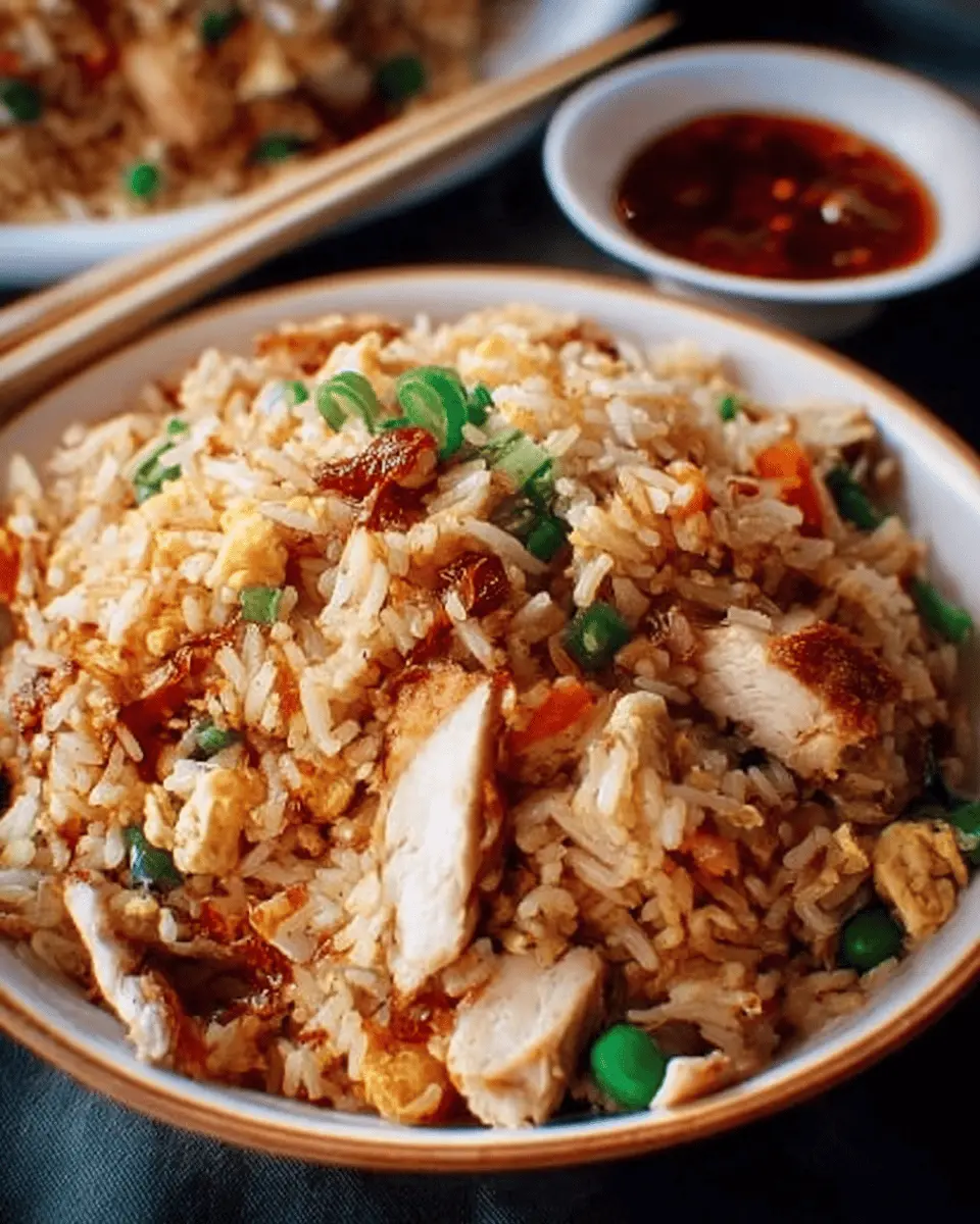 To elevate your chicken fried rice experience, consider pairing it with a fresh cucumber salad or steamed broccoli. The crunchy vegetables add a delightful contrast to the savory rice. You could also serve it alongside sweet and sour chicken for a fantastic flavor combo that satisfies all palates. For something light, a simple miso soup complements the meal beautifully.