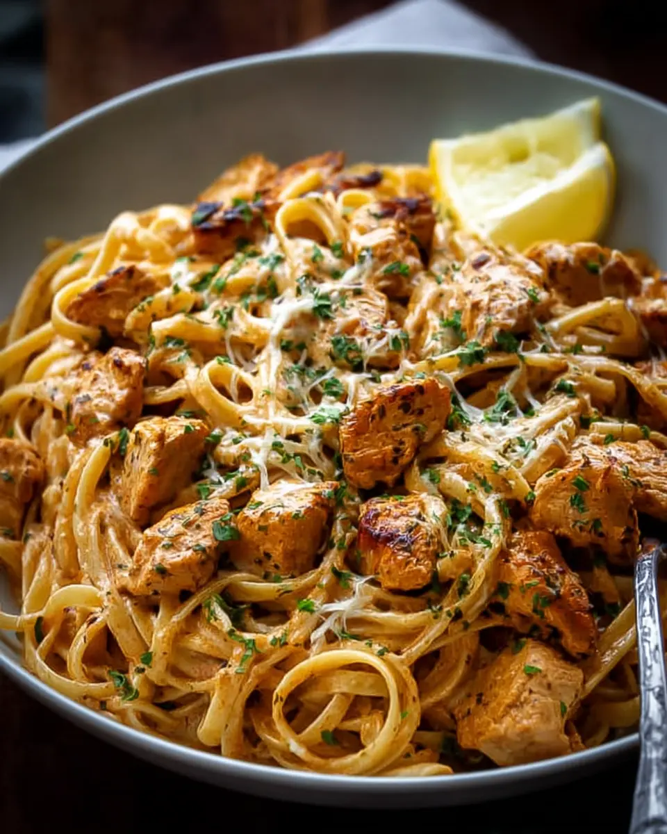 To achieve succulent chicken in your Cowboy Butter Chicken Linguine, ensure your skillet is hot before adding the chicken. This helps create a beautiful sear and lock in the juices. Cook the chicken in a single layer to allow even browning. For best results, use a meat thermometer to ensure the chicken reaches an internal temperature of 165°F — this keeps it tender and juicy.