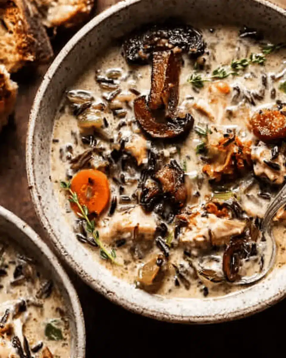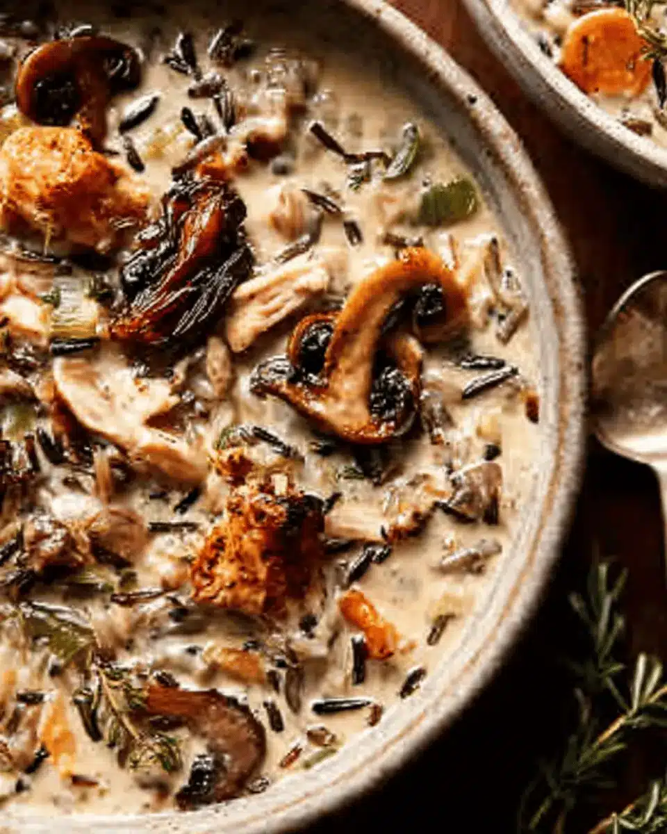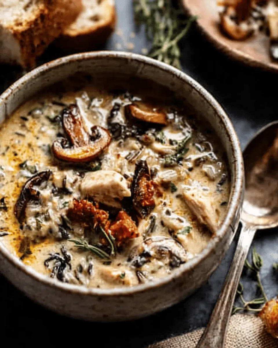 Creamy Wild Rice Chicken Soup with Roasted Mushrooms