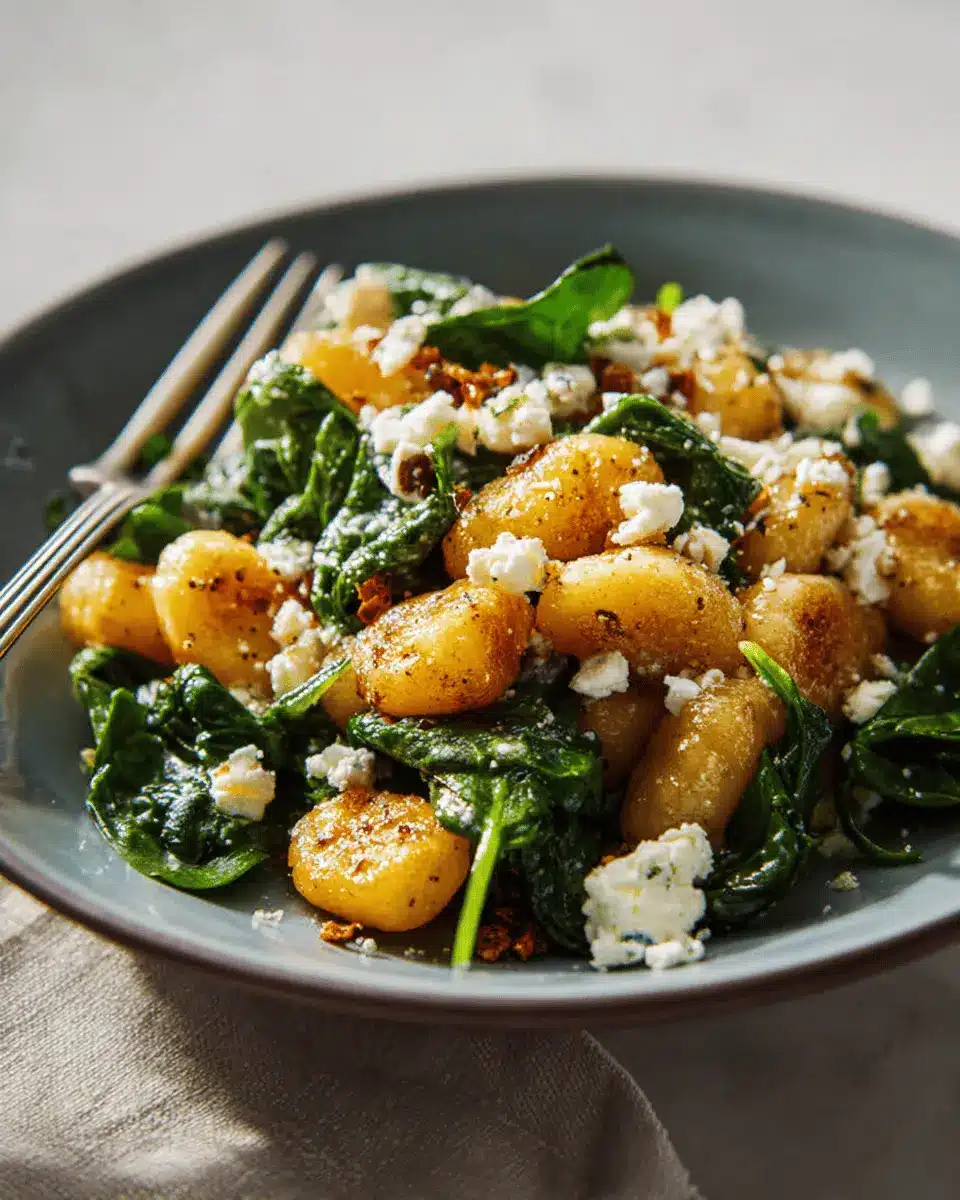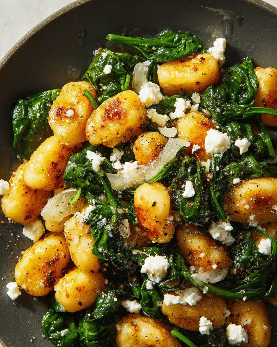 Introduction to Crispy Gnocchi with Spinach and Feta