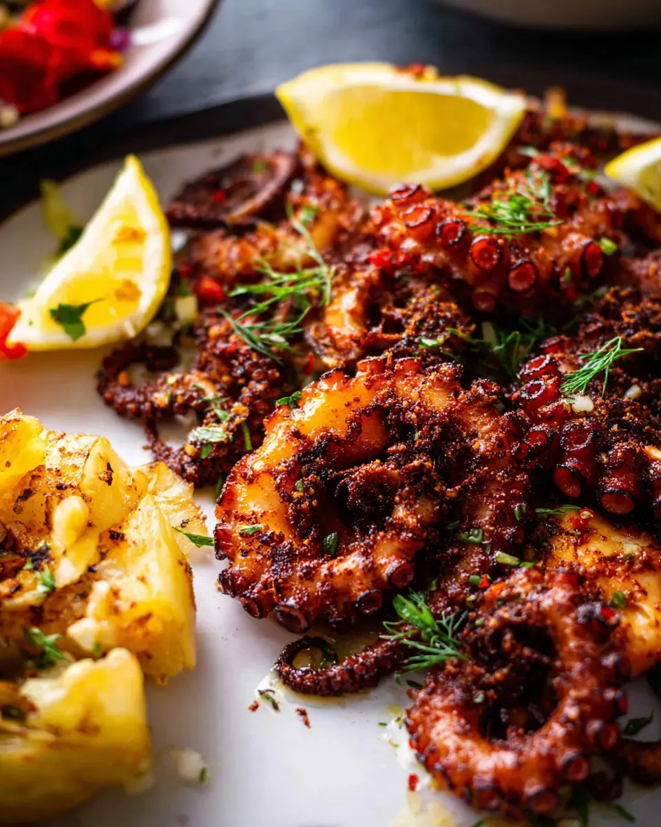 To elevate your crispy marinated baby octopus, consider pairing it with a vibrant Greek salad full of fresh vegetables and herbs. You can also serve it alongside crusty bread for mopping up any delicious juices left on your plate. If you're feeling adventurous, a side of garlic roasted potatoes or a tangy lemon aioli can make your meal even more delightful. For a refreshing drink, try a sparkling lemonade or a cool iced tea to balance the rich flavors of the octopus.