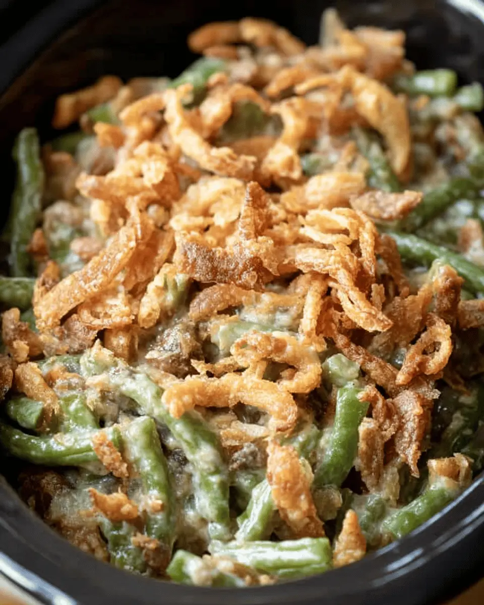 In summary, this crockpot green bean casserole is the ultimate blend of convenience and flavor. With minimal prep time, it's perfect for busy holidays or casual family dinners. Plus, your guests will appreciate the deliciously creamy and crunchy twist on a classic dish. Enjoy every comforting bite!