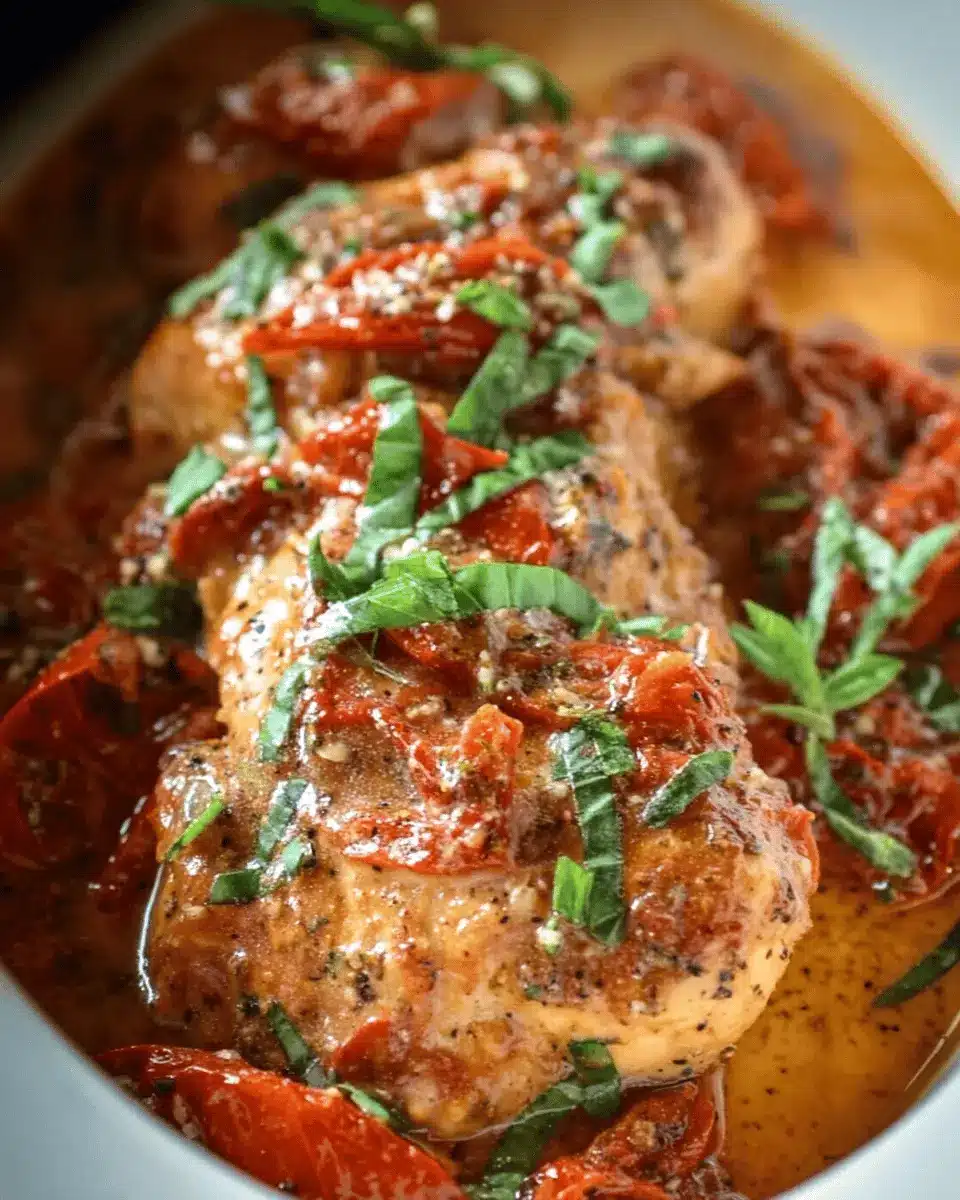 - Layered in Bowls: Serve the chicken on a bed of rice or mashed potatoes, topping it with the sauce. Add a sprinkle of fresh basil for color.