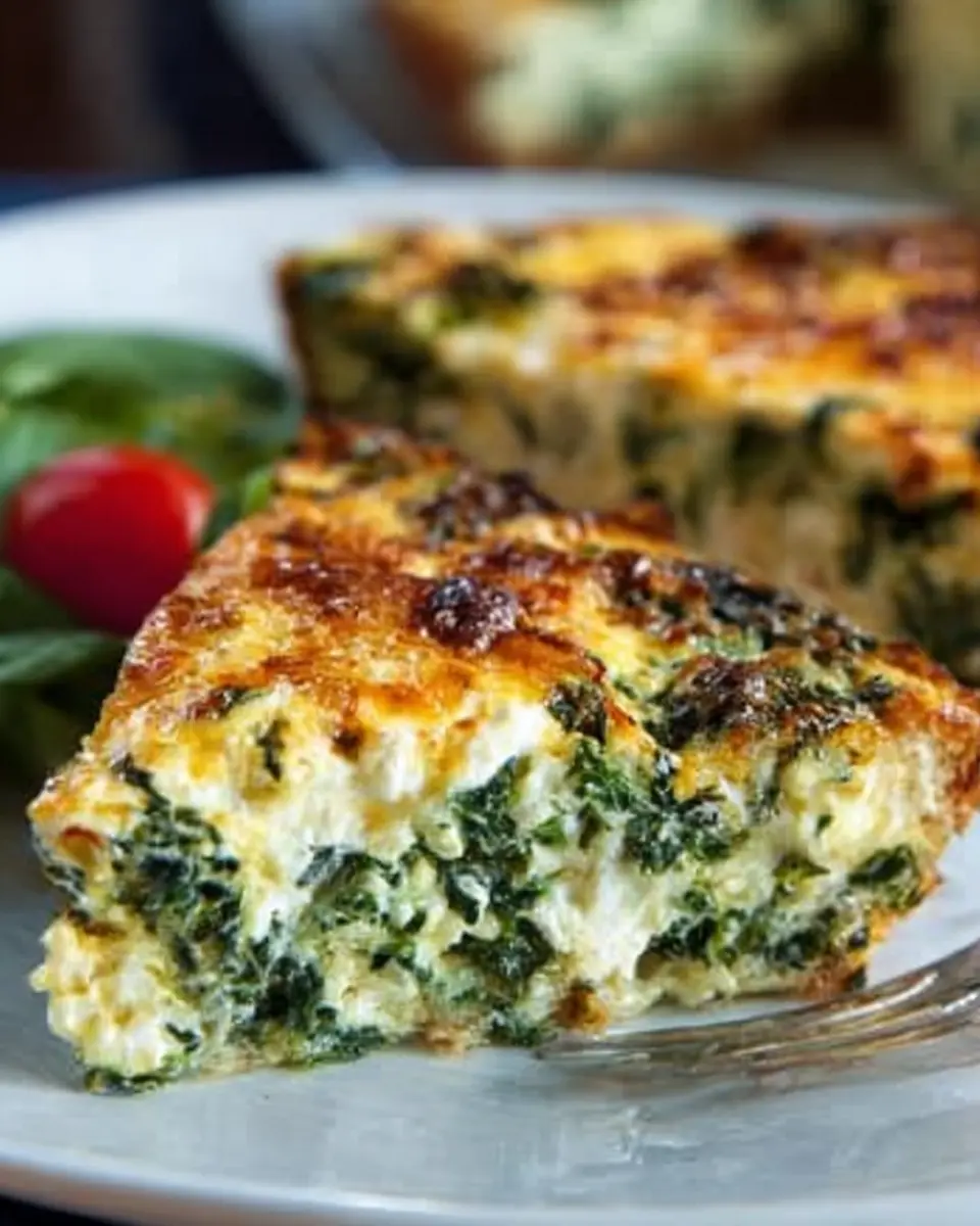 Step-by-step preparation of Crustless Cottage Cheese Quiche with Spinach