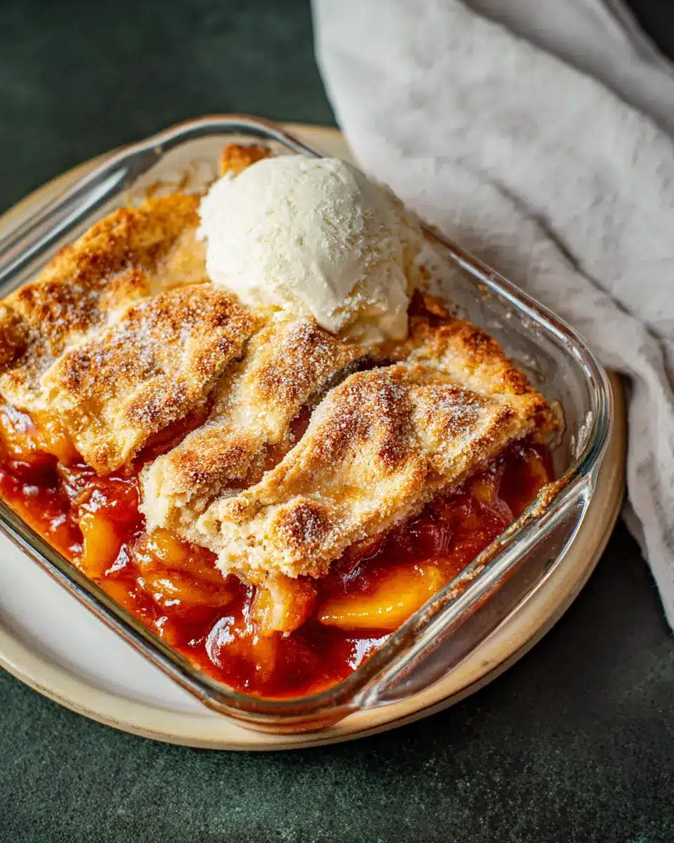 Double Crust Soul Food Peach Cobbler With Canned Peaches