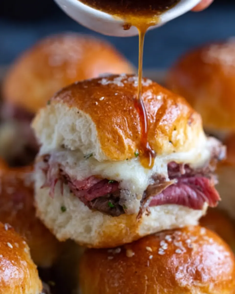 Yes! You can prepare the components in advance. Caramelize the onions and slice the meat the night before, then assemble your sliders before baking. This makes them perfect for serving at parties or game days. Just don’t forget to warm the au jus before dipping for that irresistible flavor!