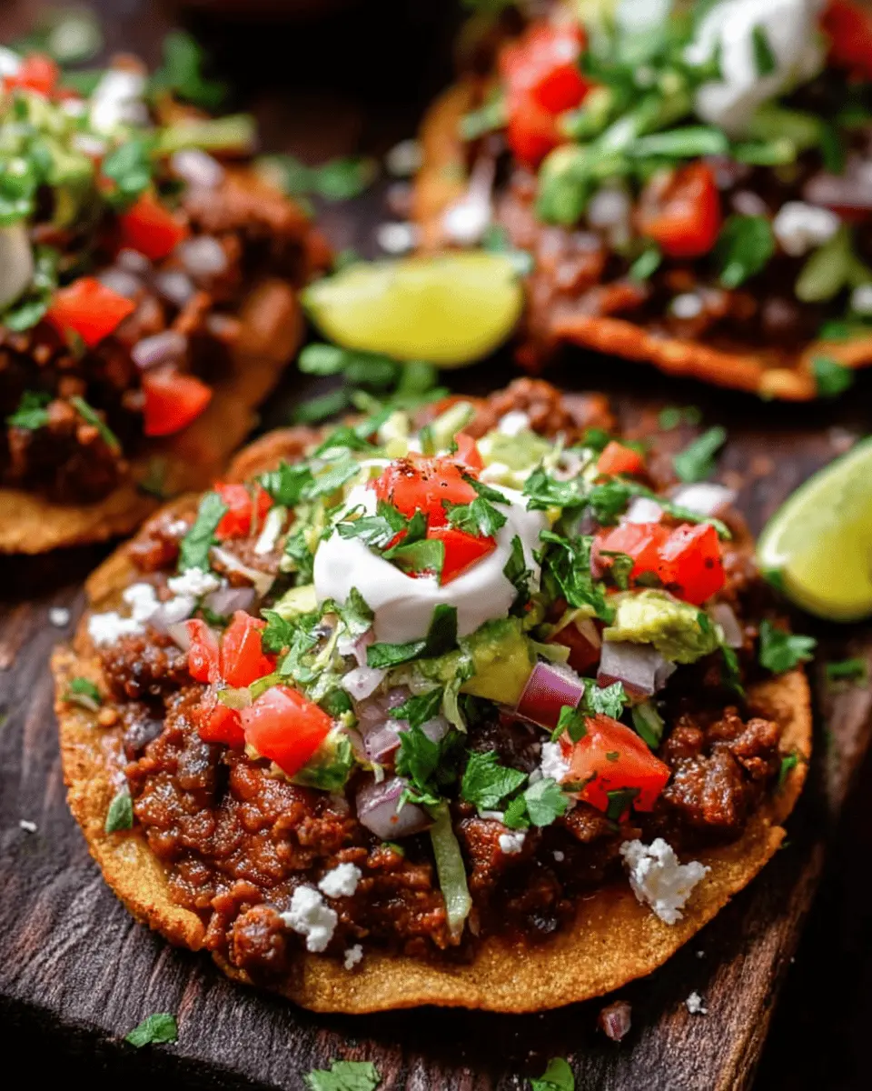 In summary, these easy ground beef tostadas are a delightful addition to your weeknight meal rotation. With a satisfying crunch and endless topping possibilities, they cater to every palate. Why not try making them tonight? Save time and enjoy a delicious dinner that’ll please the whole family!