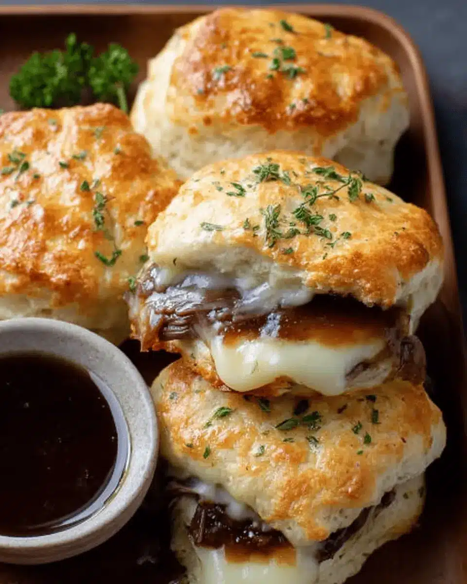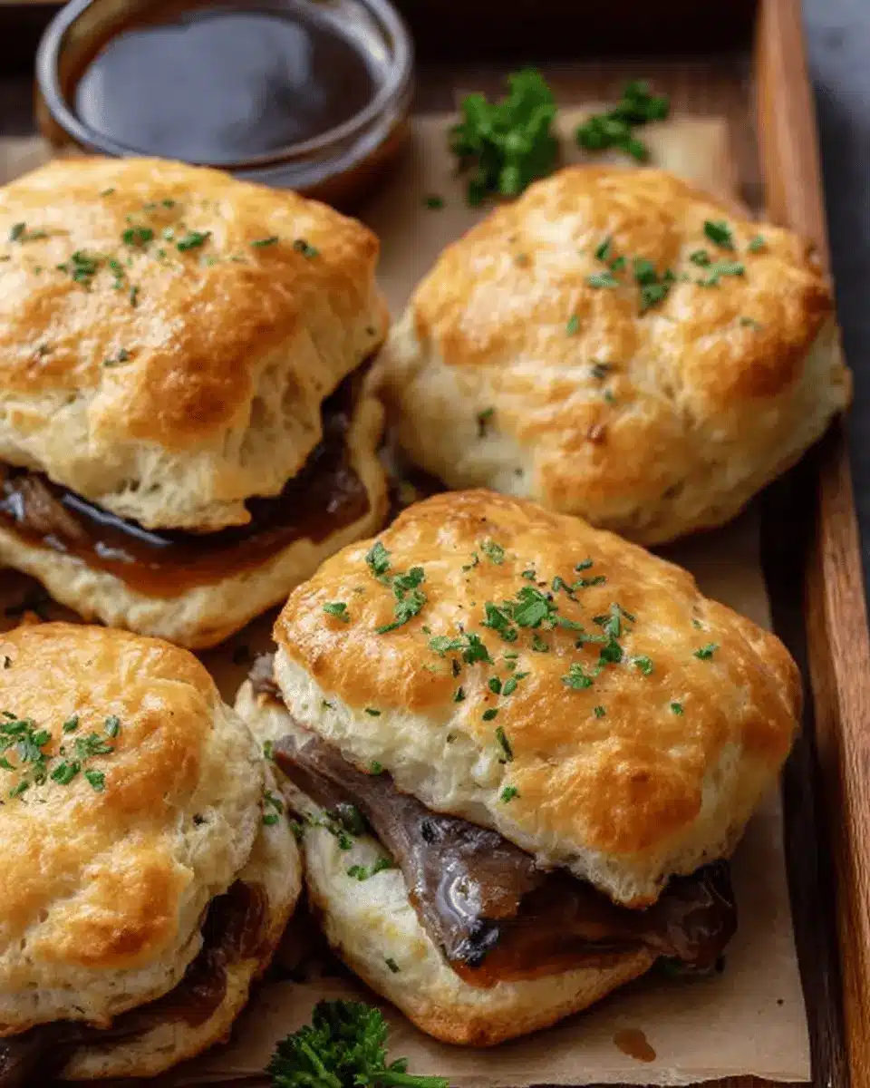 Leftover French Dip Biscuits can be stored in an airtight container in the refrigerator for up to three days. For longer storage, consider freezing them. Simply wrap each biscuit tightly in plastic wrap, then place them in a freezer-safe bag. To reheat, pop them in an oven or air fryer at 350°F until warm and crispy.