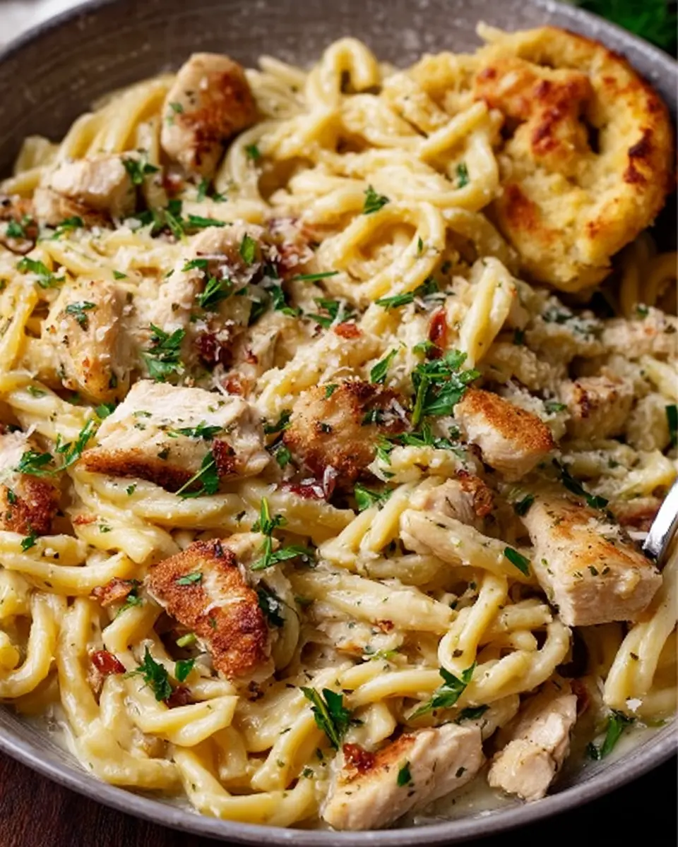 In conclusion, Garlic Parmesan Chicken Pasta is a delightful dish that brings comfort and flavor to your dining table in just 25 minutes. Perfect for busy weeknights or a cozy gathering, its creamy sauce and juicy chicken are sure to impress. Give this recipe a try, and treat yourself to a culinary delight!