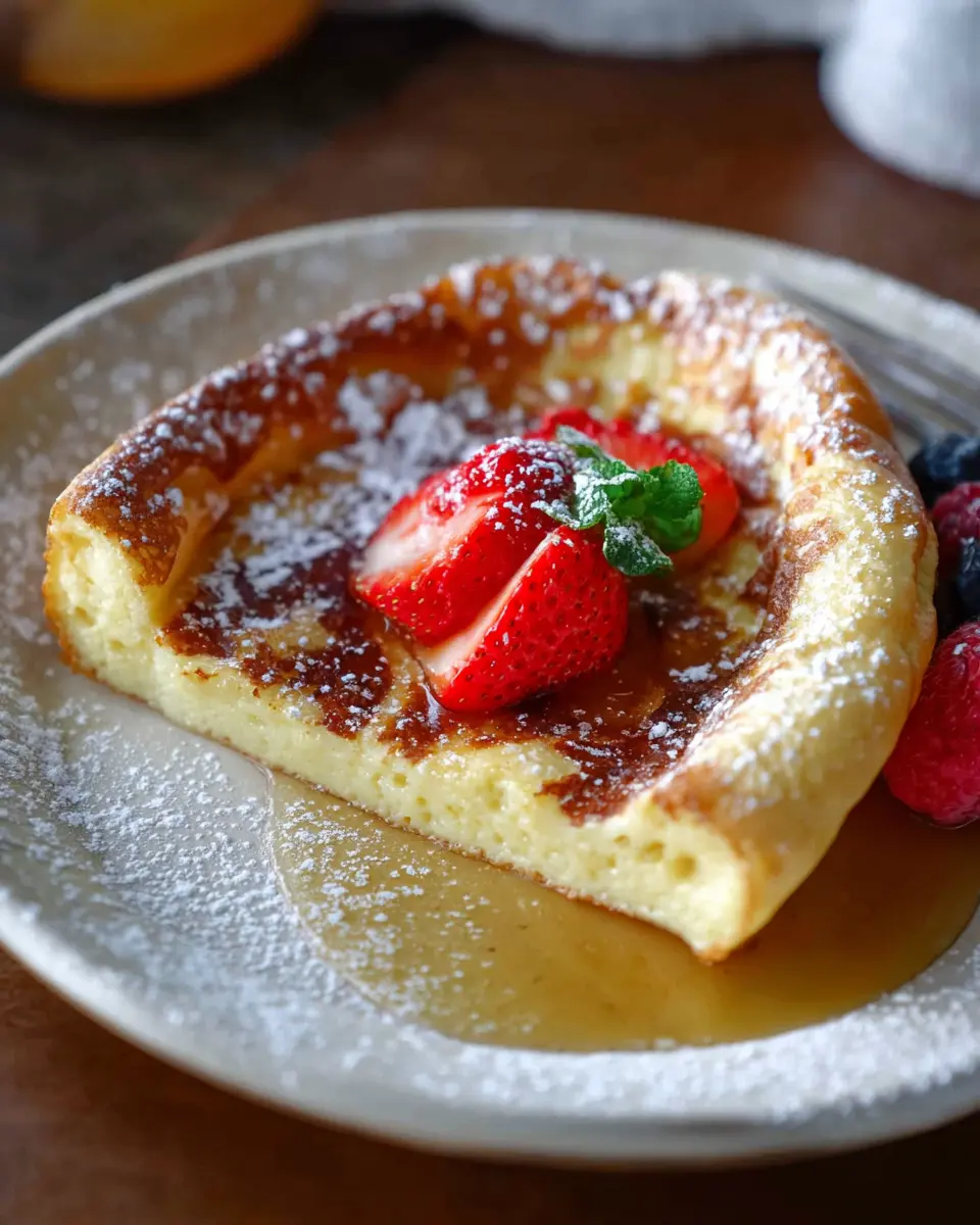 Once baked, they emerge golden-brown and airy, inviting you to top them with a dusting of powdered sugar, fresh fruit, or your favorite syrup. Whether you're having a cozy weekend brunch or want to surprise your guests, German pancakes are sure to be a showstopper. Plus, they provide a wonderful canvas for a variety of toppings, making them a versatile choice for any palate. Don’t just take my word for it—try them out and elevate your breakfast repertoire!