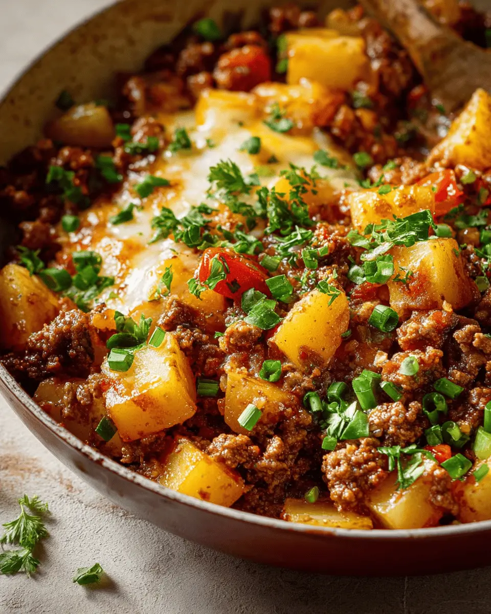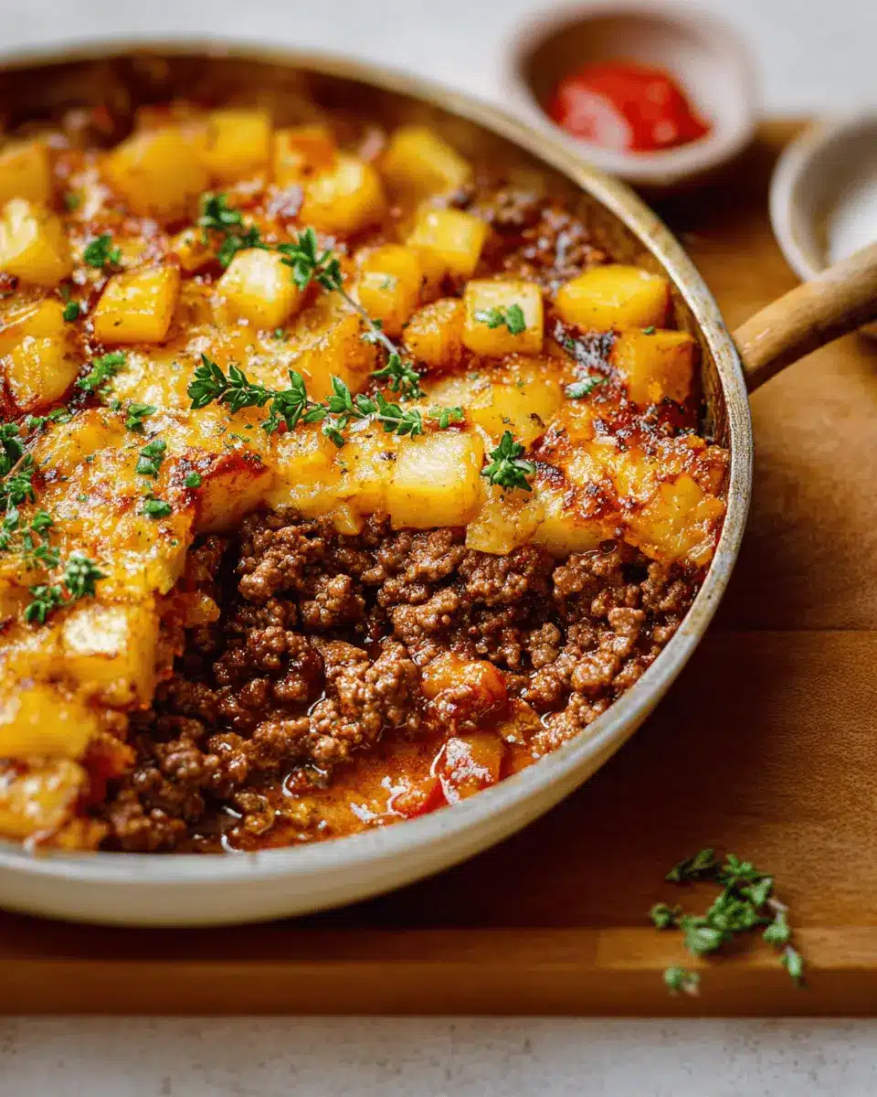 Avoid overcrowding the skillet when browning your beef. You want that beautiful sear, and giving the meat enough space is key. Also, steer clear of overcooking the potatoes; you want them tender but not falling apart. Finally, resist the temptation to skip the cheese! It elevates the dish and adds a delightful creaminess; if you prefer a dairy-free option, consider nutritional yeast for a cheesy-like flavor.