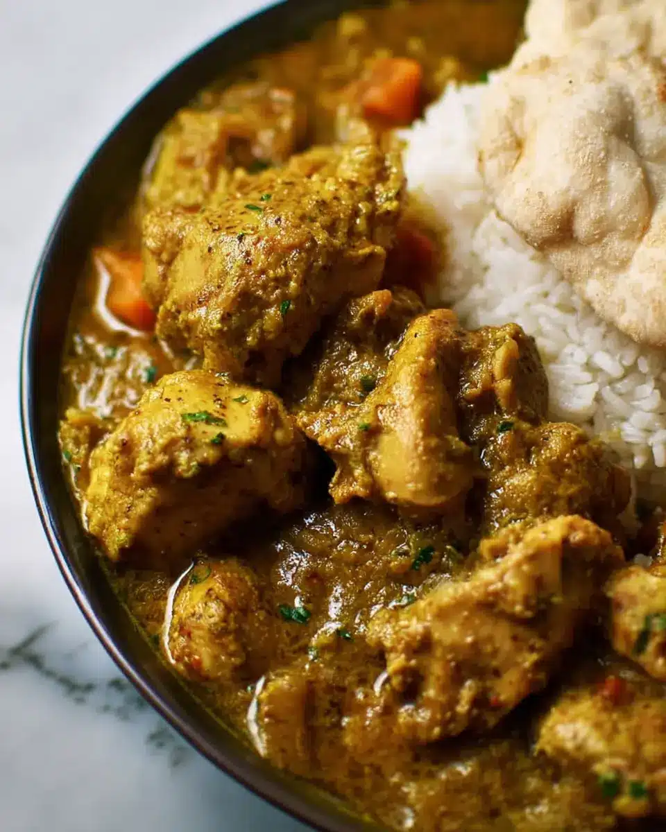 To truly savor Jamaican Curry Chicken, serve it alongside warm roti or a fluffy bed of steamed rice. The rich, aromatic sauce beautifully complements the neutral flavors of these sides, allowing every bite to shine. If you're feeling adventurous, try making your own roti with this simple recipe that will elevate your meal!
