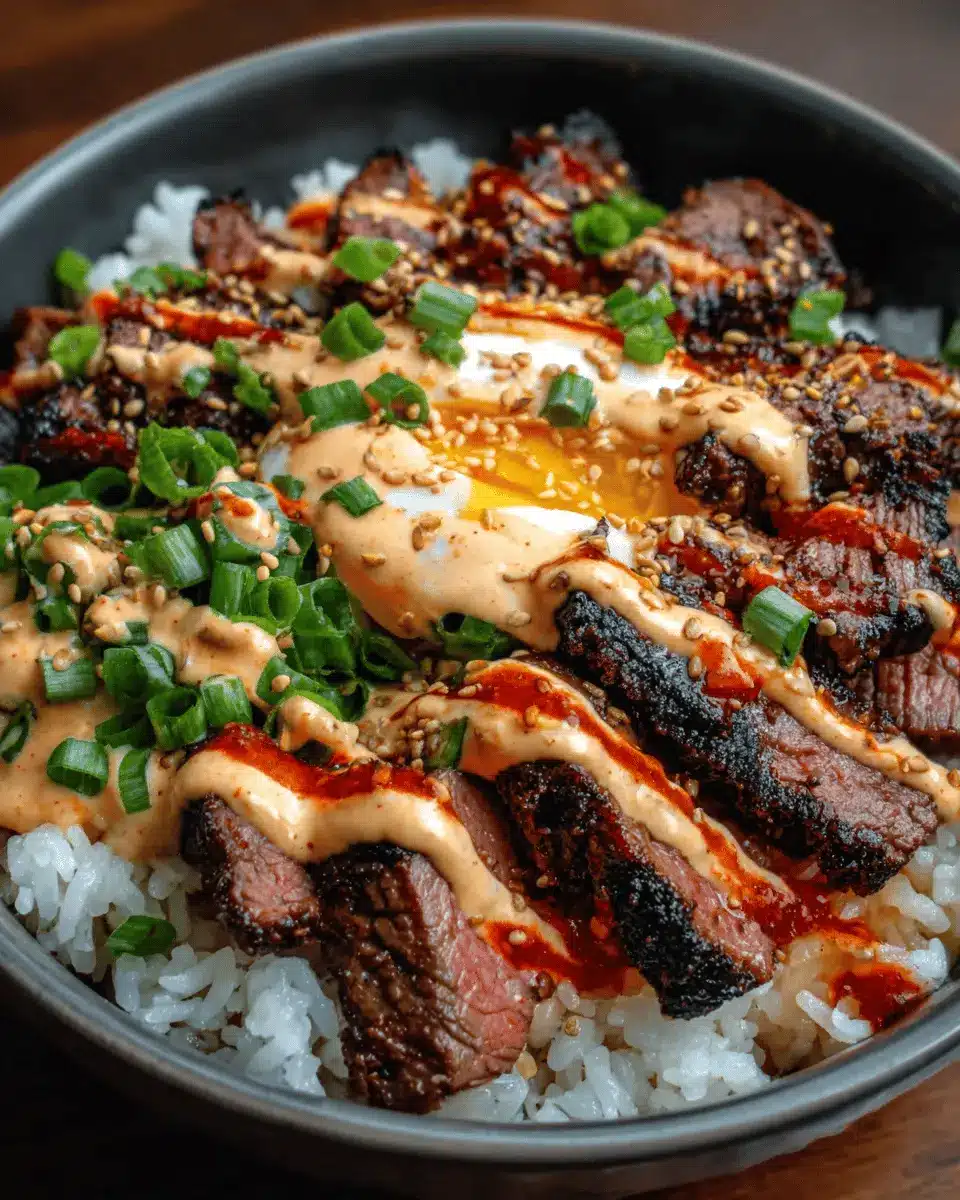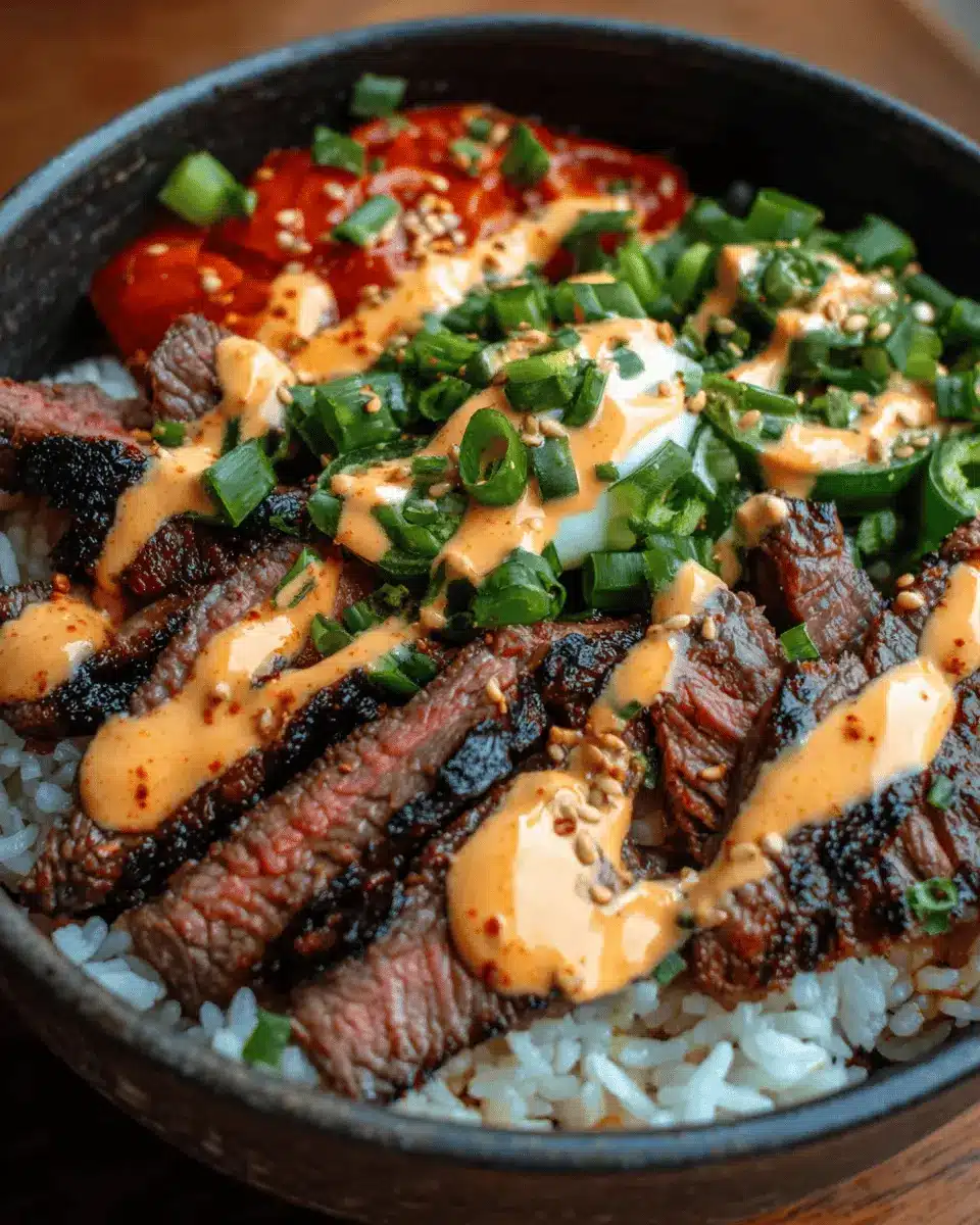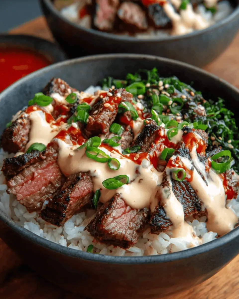 Korean BBQ Steak Rice Bowls with Spicy Cream Sauce