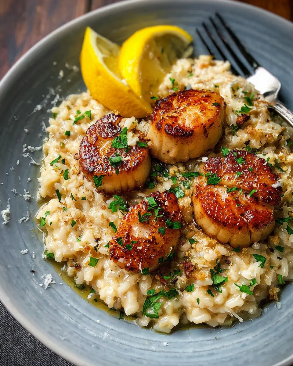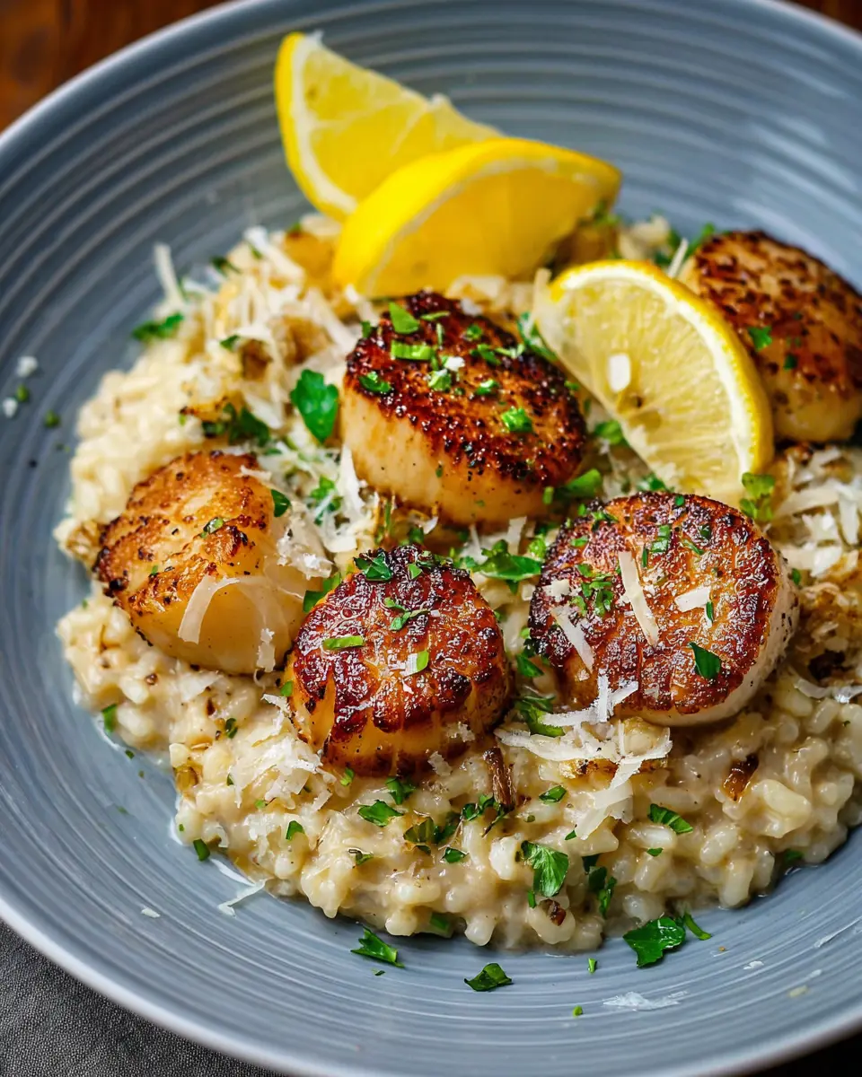 Presentation is key when showcasing your lemon butter scallops. A sprinkle of freshly chopped parsley or chives adds a pop of color. Consider adding a few lemon zest curls or a slice of lemon on the side for a vibrant touch. To impress your guests, serve the dish in elegant bowls, allowing the visually stunning layers of scallops atop the risotto to shine.