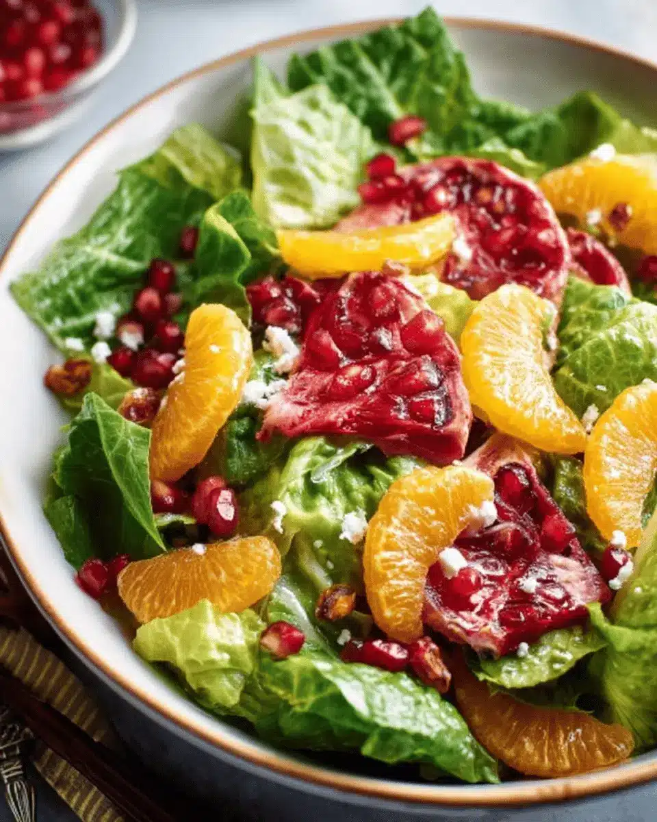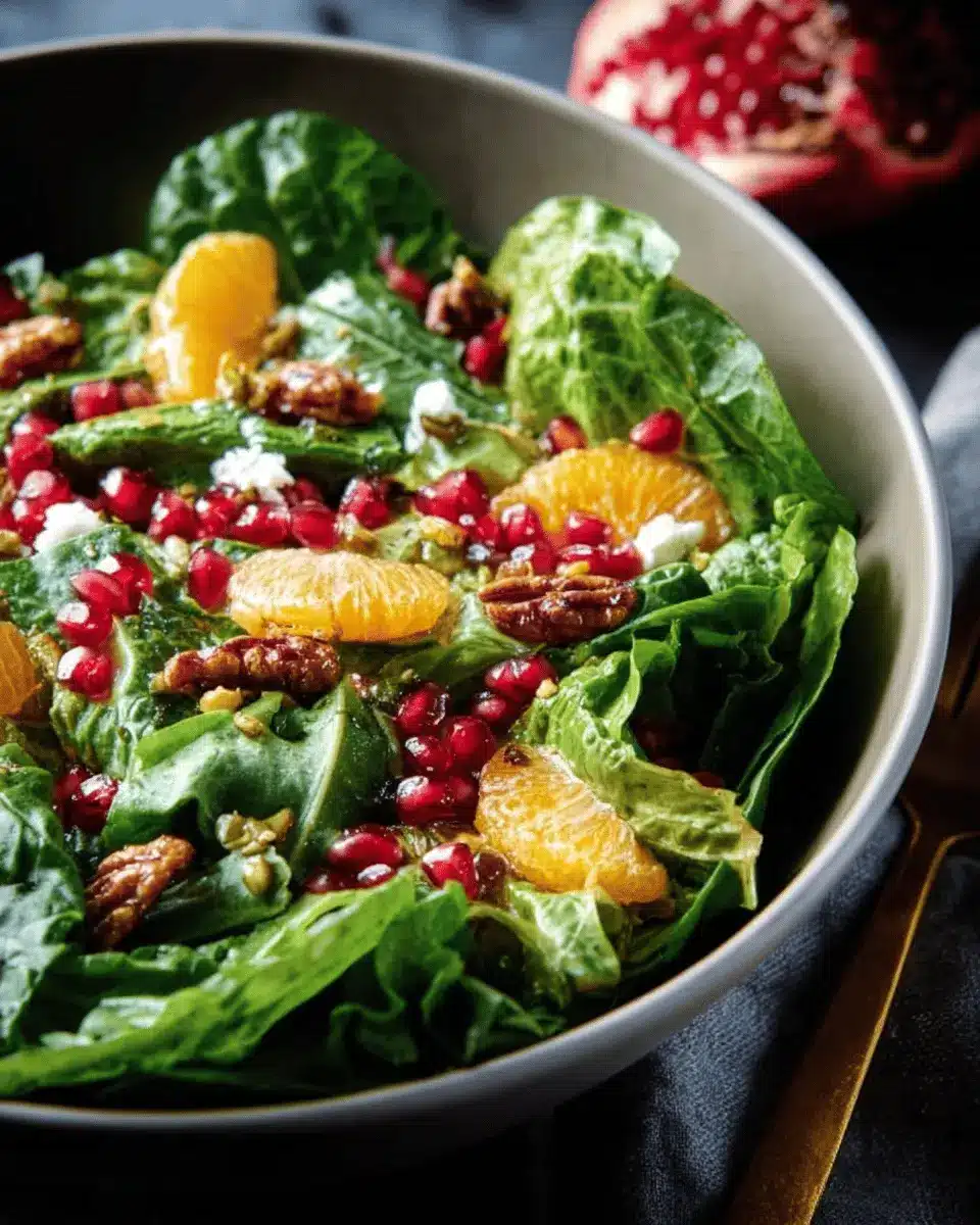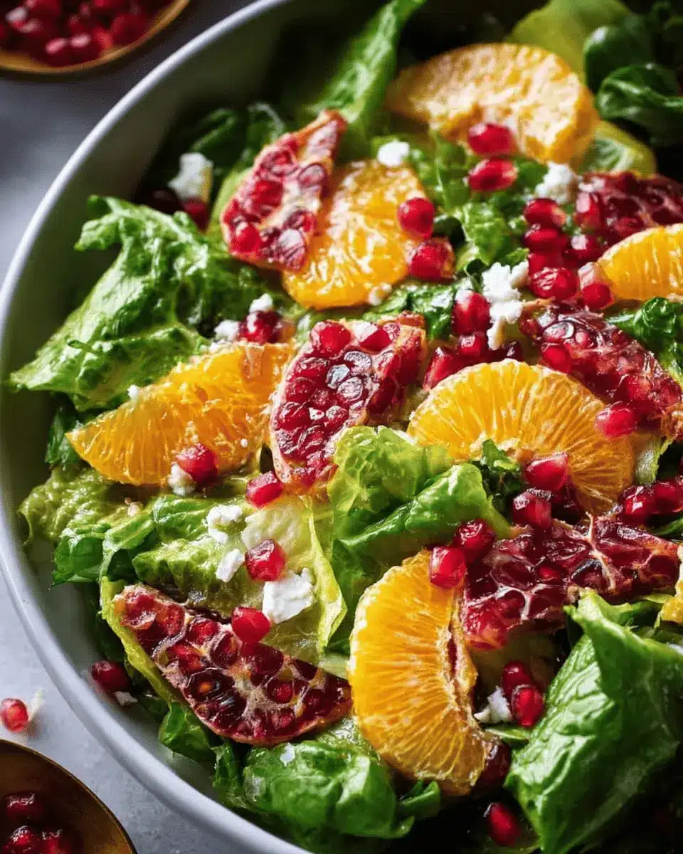 The true stars of this salad are the juicy oranges and tart pomegranate arils. Oranges add a refreshing sweetness, while pomegranates offer a delightful pop of flavor and nutrition, including antioxidants and vitamins. To elevate the texture, toss in pecans that provide a satisfying crunch and nutty flavor. These ingredients work in harmony, creating a dish that’s not only delicious but visually appealing.