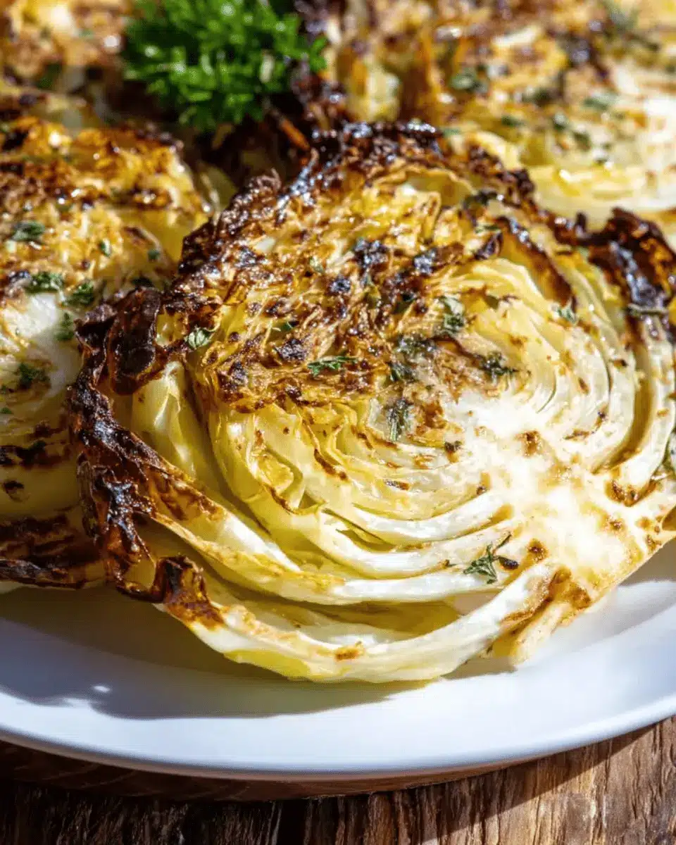 For the ultimate texture, roast the steaks a little longer, about 10-15 minutes or until they reach your desired crispiness. Once they’re out of the oven, a sprinkle of fresh parsley on top will add a pop of color and flavor. These oven roasted garlic cabbage steaks are perfect alongside your favorite protein or as a standalone dish. Enjoy every bite!