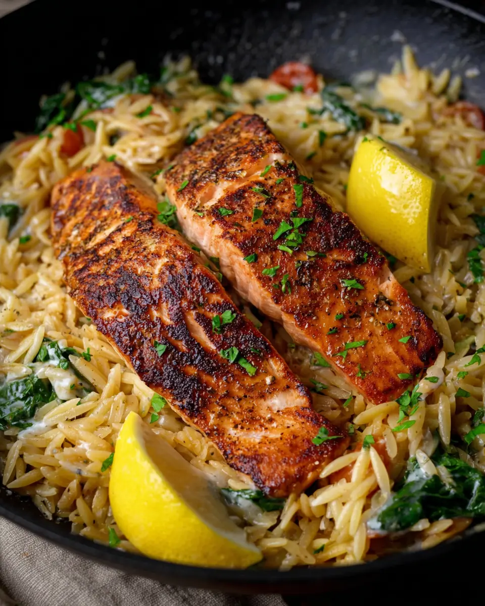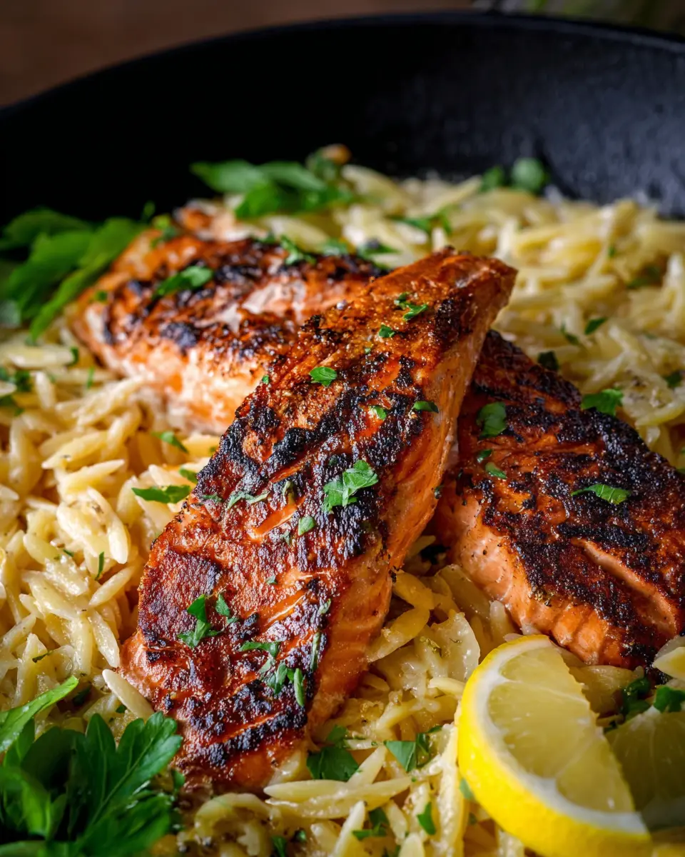 Pan-Fried Salmon with Creamy Lemon Orzo