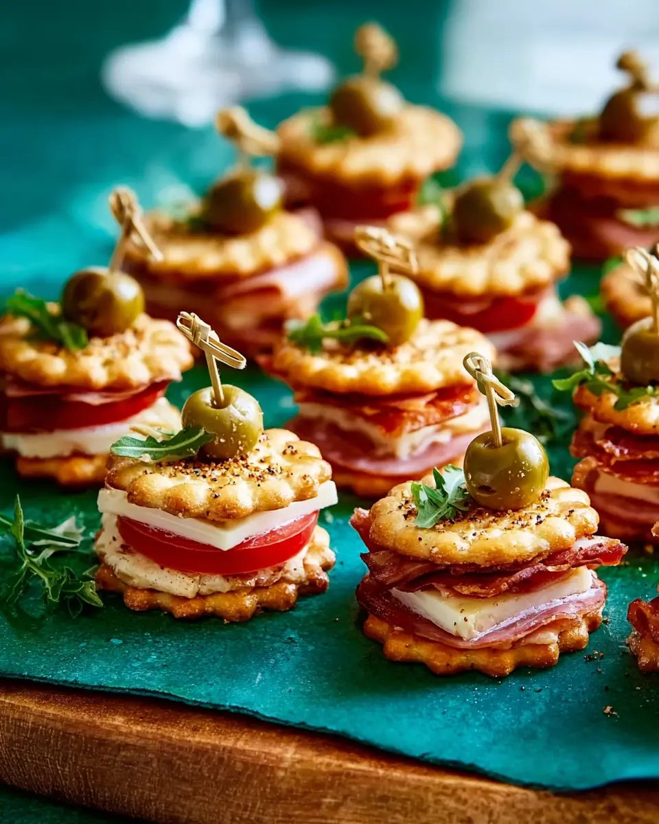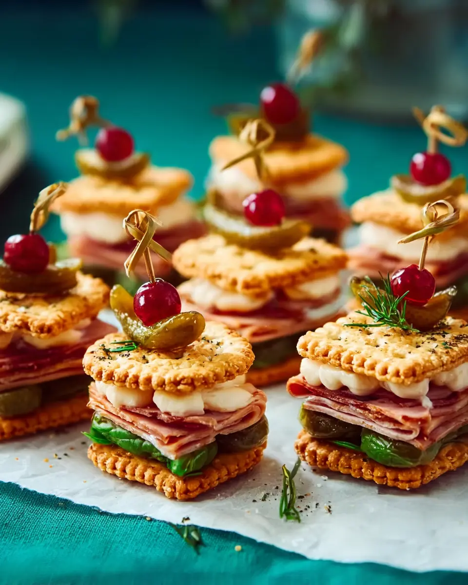 - Round buttery crackers: The Ritz crackers are the star of this recipe, delivering a perfect salty crunch that complements the savory fillings.