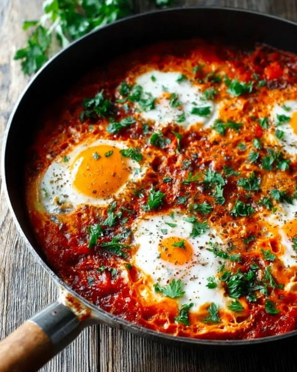 Absolutely! You can prepare the tomato sauce and store it in the fridge for up to three days. When you’re ready to eat, just reheat the sauce, make wells, and crack in the eggs for a fresh, delicious meal. If you want to meal prep, consider keeping the eggs separate until you're ready to cook to maintain the best texture.