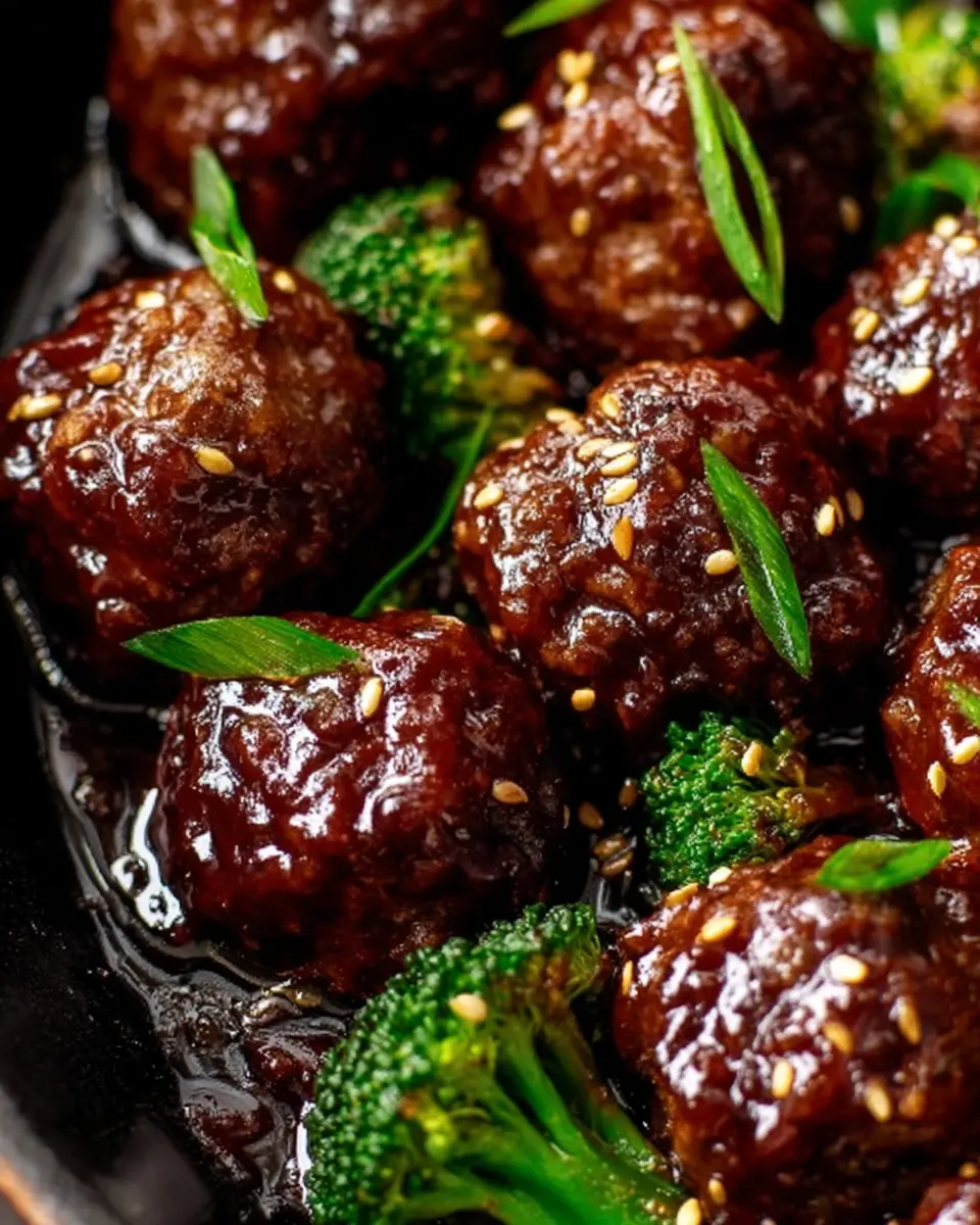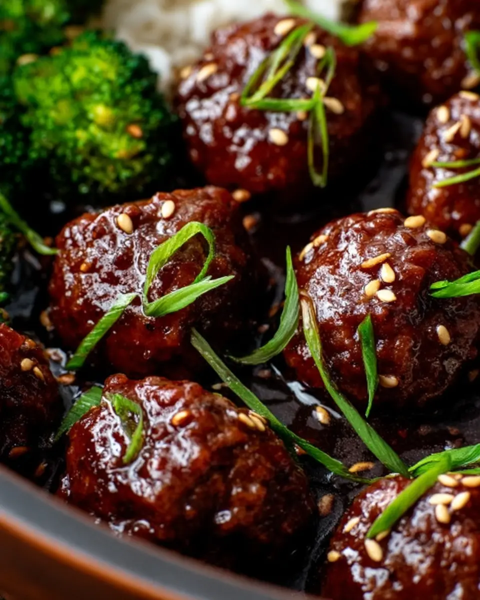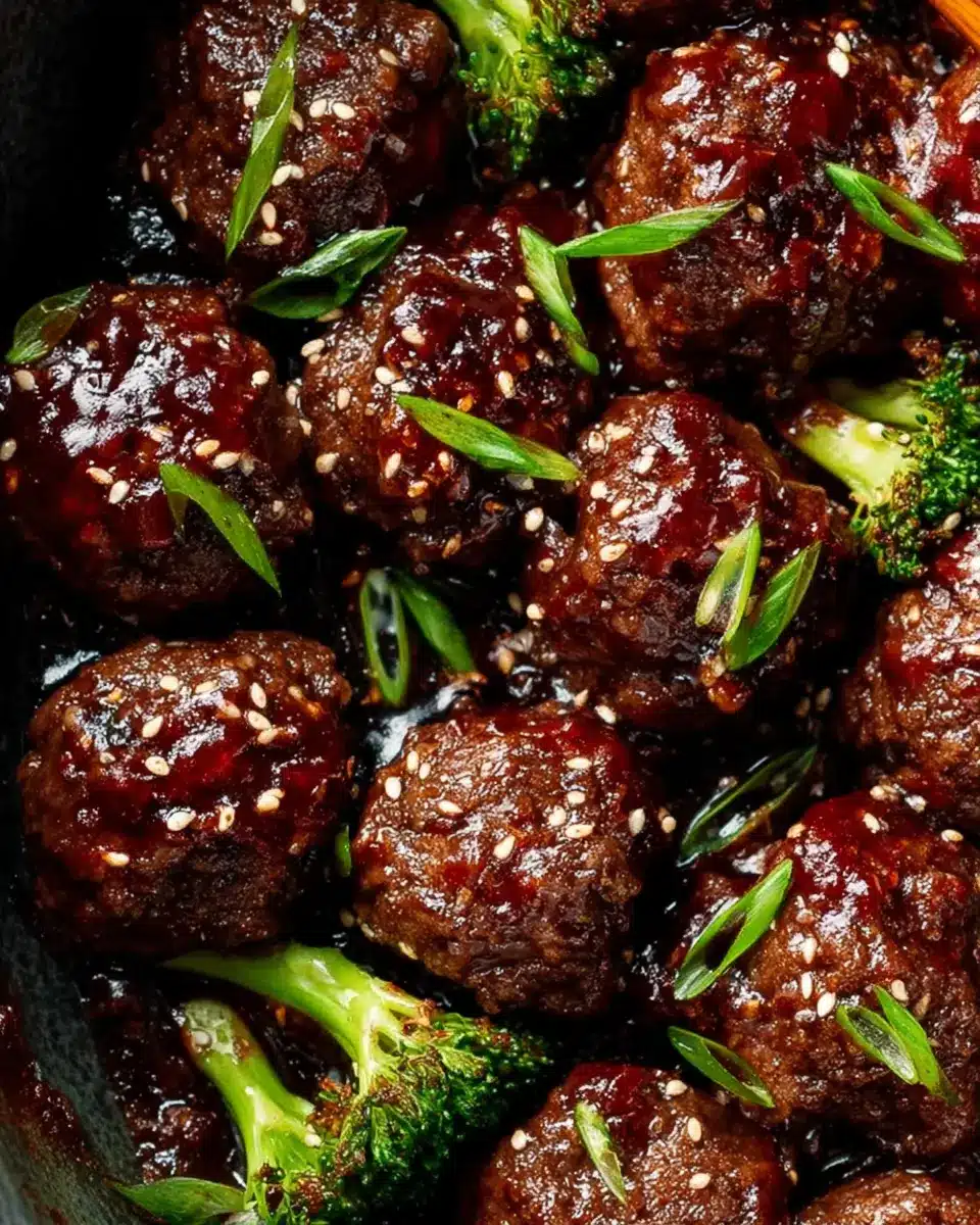 For a delightful serving suggestion, place the sticky meatballs and broccoli over bowls of your favorite rice or noodles. Garnish with additional sliced green onions and sesame seeds for a restaurant-worthy touch.