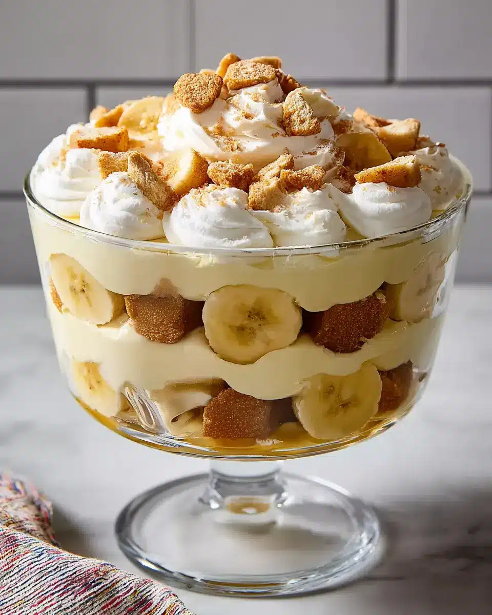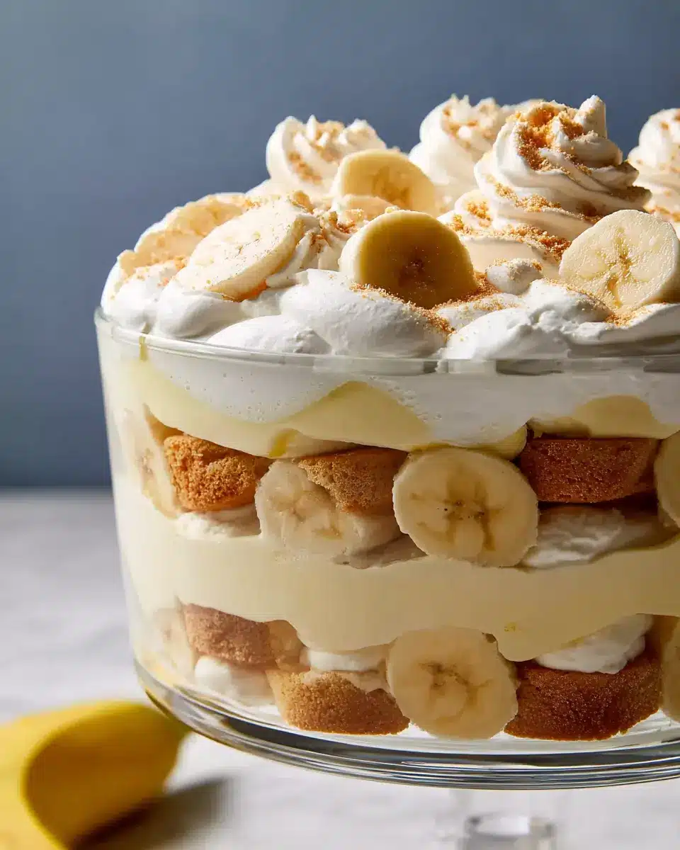 Now, we’re ready for the fun part! In a glass serving bowl, start layering your ingredients. Begin with a layer of vanilla wafers, followed by slices of banana, and then a generous layer of your pudding mixture. Repeat these layers until all ingredients are used up—visual appeal is key to the best banana pudding!